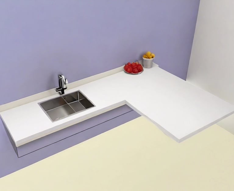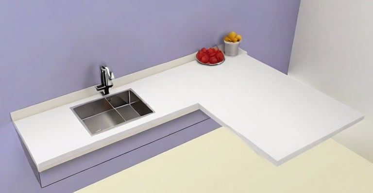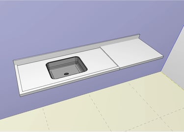 Bancada de Canto: Para uma bancada de canto, considere cada segmento separadamente antes de somar as áreas.
