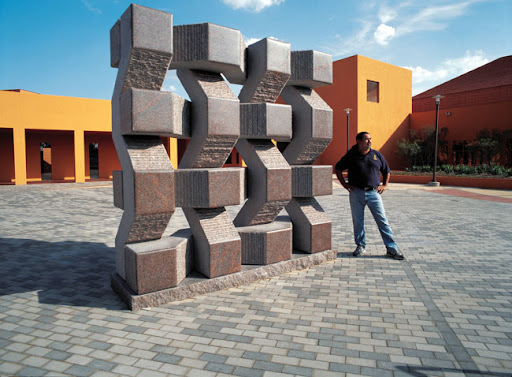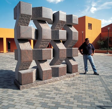 Jesús Moroles, conhecido por suas instalações em larga escala, usou granito para criar espaços reflexivos que incorporam elementos de água e som, demonstrando a versatilidade do granito em grandes projetos artísticos.