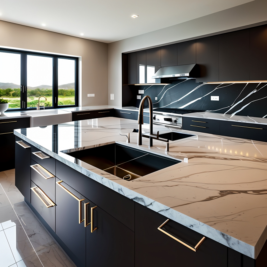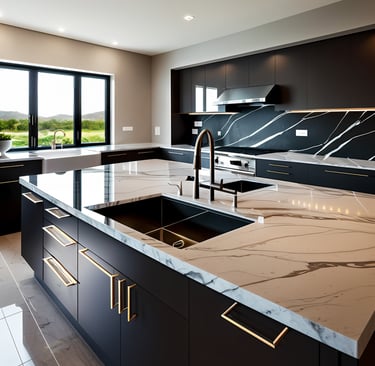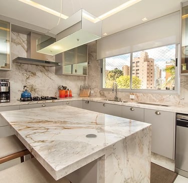 Bancadas de Cozinha e Banheiro: Sua superfície lisa é ideal para áreas de preparação de alimentos e vaidades.