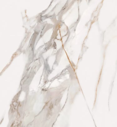 Calacatta: Mais raro que o Carrara, possui um fundo branco mais brilhante e veios distintos, variando do ouro ao cinza.