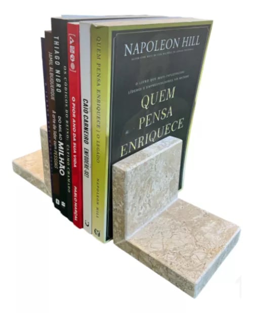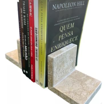 3. Suportes para Livros e Objetos Decorativos: Use pequenos blocos de mármore ou granito como suportes de livros elegantes para sua estante ou como bases para esculturas e outros objetos decorativos. Eles adicionam um toque de robustez e refinamento a qualquer espaço.