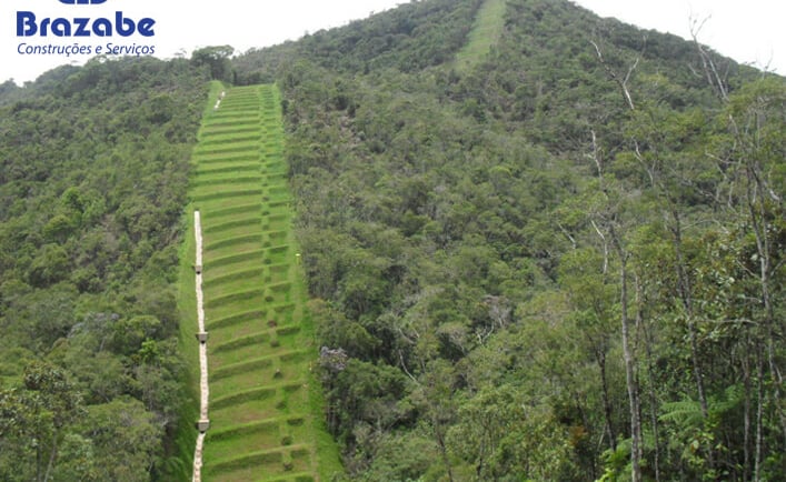Técnicas avançadas de manejo de águas pluviais são implementadas para garantir que a água da chuva seja corretamente canalizada, evitando erosão e ajudando na recarga de aquíferos subterrâneos.