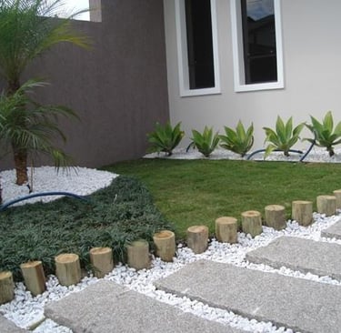 4. Muros e Bordas de Granito: Muros ou bordas de granito não só servem como delimitadores de espaços dentro de seu jardim, mas também adicionam uma dimensão visual interessante. Eles podem ser usados para criar níveis ou separar diferentes tipos de plantações, enquanto proporcionam durabilidade e resistência contra elementos naturais.